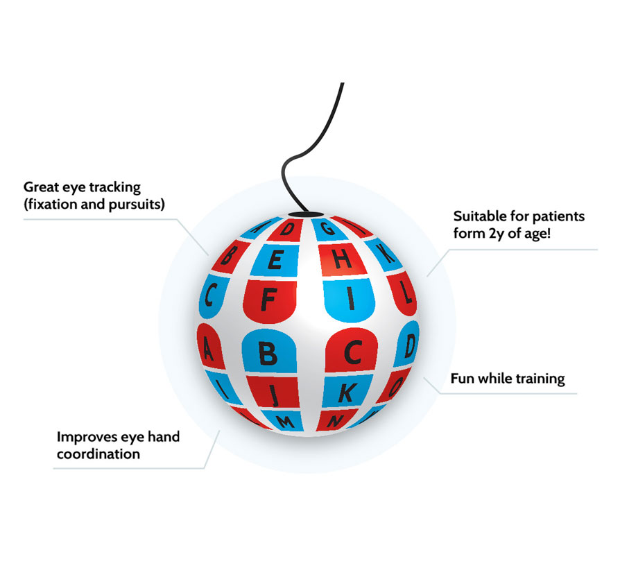 La Pelota de Marsden es una herramienta de terapia visual que consiste en una pelota con letras o números impresos, suspendida de una cuerda de aproximadamente 1,5 metros. Se utiliza para mejorar la coordinación ojo-mano, el seguimiento ocular y la percepción de profundidad en pacientes con problemas de visión binocular.